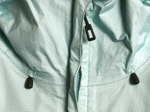 裾とフードには防風効果と、体温を逃がさない為のドローコード付き