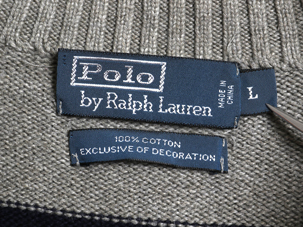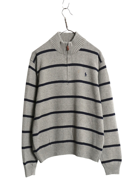 00s ポロ ラルフローレン コットン ニット セーター メンズ L オールド ハーフジップ ハイネック ボーダー ワンポイント リブ編み シンプル