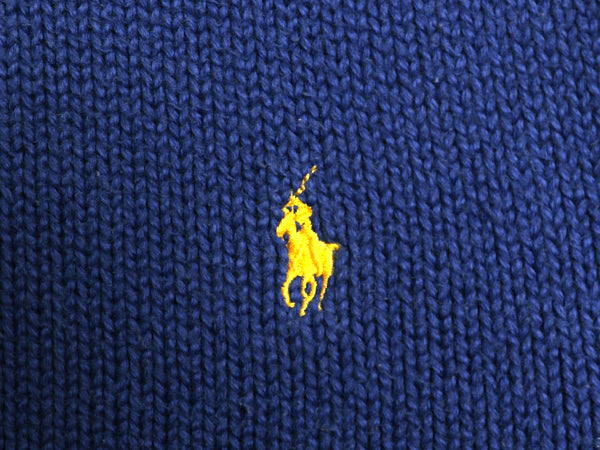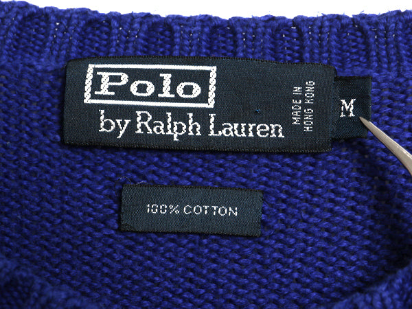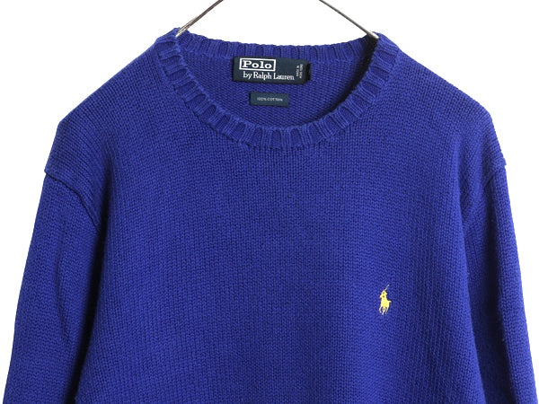 90s ポロ ラルフローレン コットン ニット セーター メンズ М オールド 長袖ニット ワンポイント クルーネック シンプル きれいめ ブルー