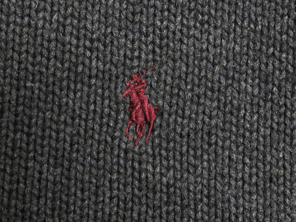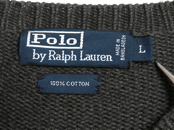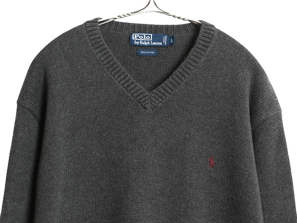 90s ポロ ラルフローレン コットン ニット セーター メンズ L 小さめ オールド 長袖ニット ワンポイント Vネック シンプル きれいめ グレー