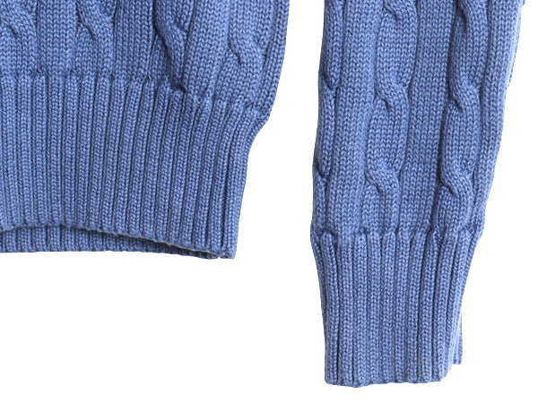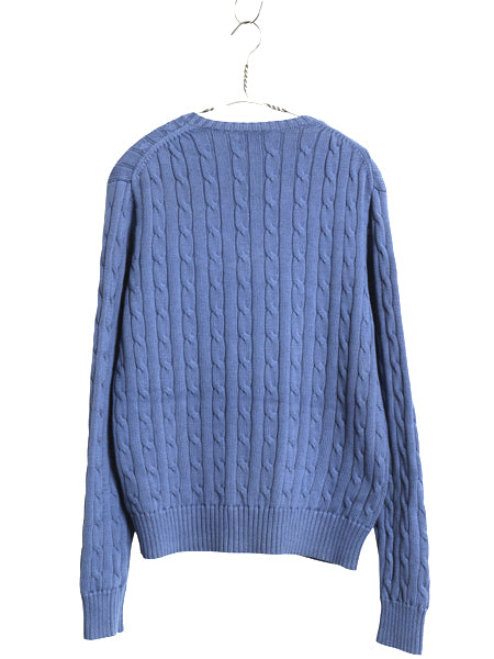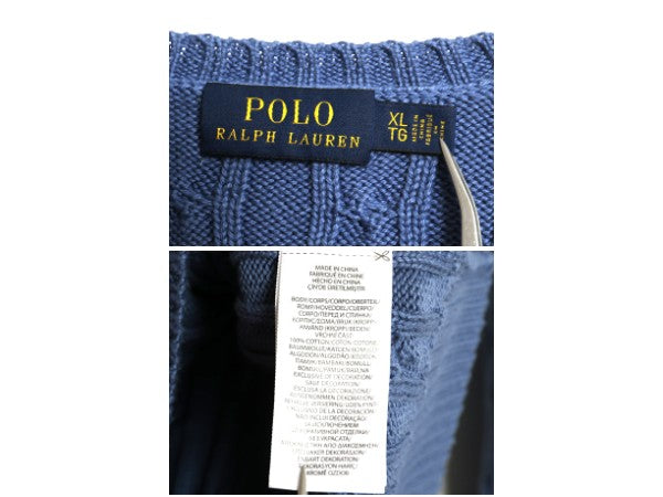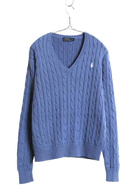 ポロ ラルフローレン コットン ケーブル ニット セーター レディース XL 古着 長袖ニット ワンポイント Vネック シンプル 大きいサイズ 青
