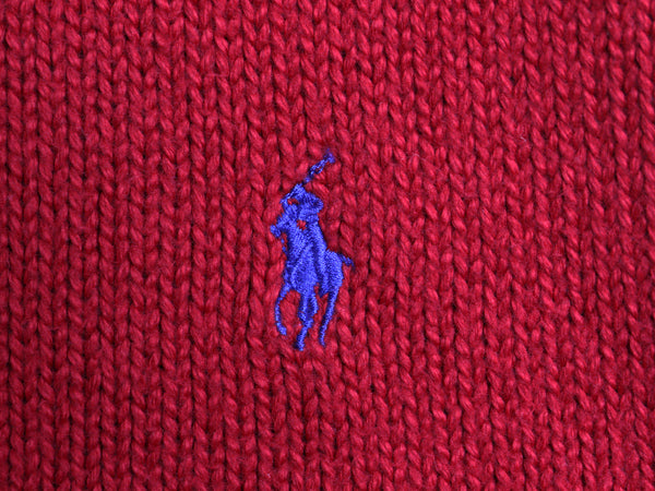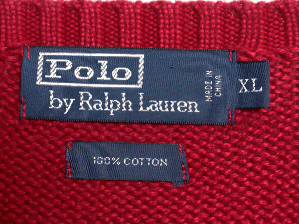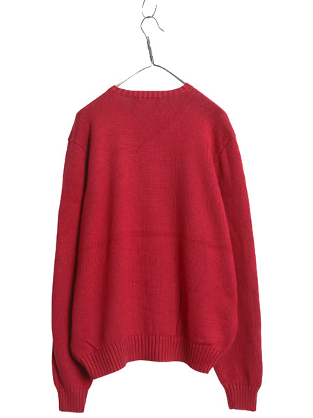 00s ポロ ラルフローレン コットン ニット セーター メンズ XL オールド 長袖ニット ワンポイント クルーネック シンプル 大きいサイズ 赤