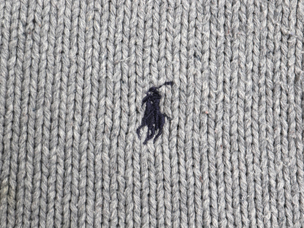 90s ポロ ラルフローレン コットン ニット セーター メンズ XL オールド 長袖ニット ワンポイント クルーネック シンプル 大きいサイズ 灰