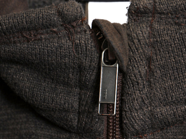 セーターのような見た目とポリエステルの丈夫さを兼ね備え