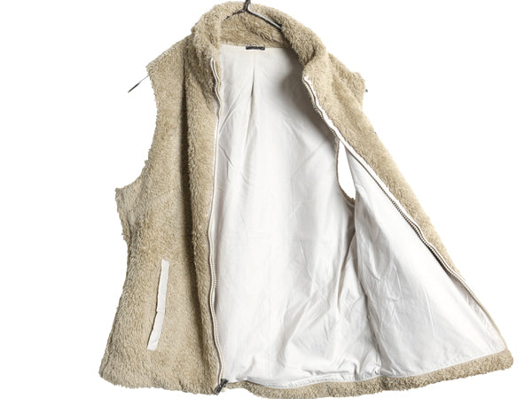 パタゴニア ロスガトス フリース ベスト レディース М 程/ ハイ パイル ボア 重ね着 前開き フルジップ アウトドア ハイネック ベージュ