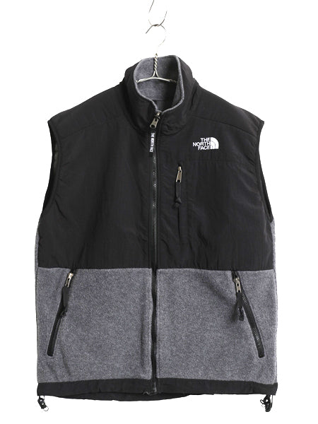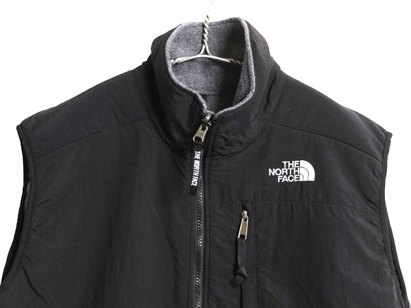 ノースフェイス デナリ ベスト レディース М / アウトドア 前開き 重ね着 フルジップ フリース ナイロン ハイネック ワンポイント 黒 灰