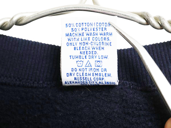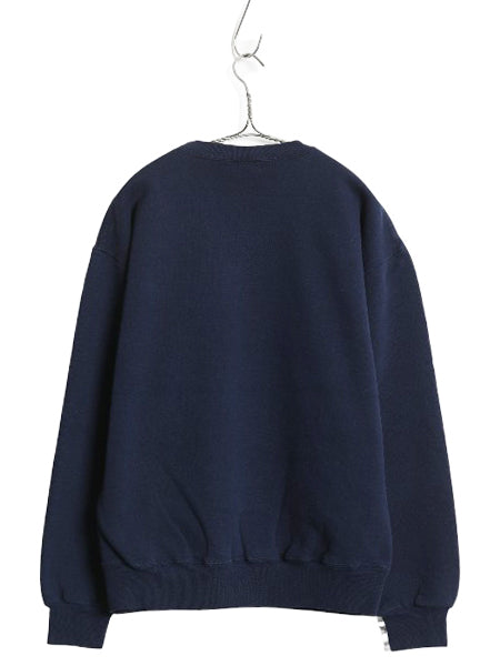 90s ラッセル ワンポイント ロゴ 刺繍 スウェット メンズ レディース L / オールド トレーナー 前V 裏起毛 クルーネック シンプル ネイビー