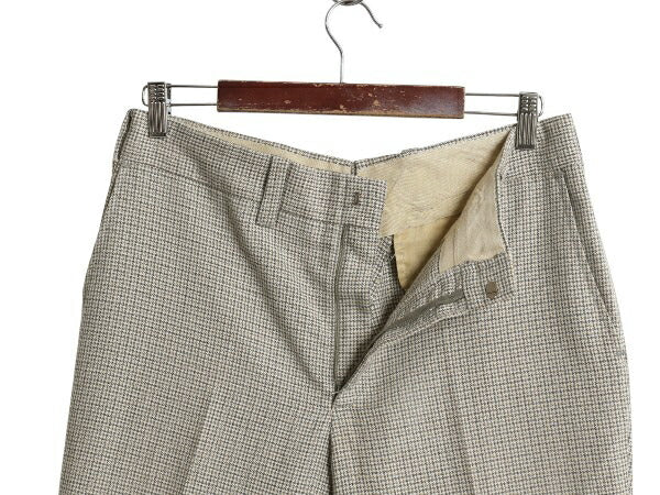 80s 千鳥格子 チェック サマー ウール パンツ メンズ 実寸 33 29.5 古着 ヴィンテージ スラックス ノータック ストレート シワになりにくい