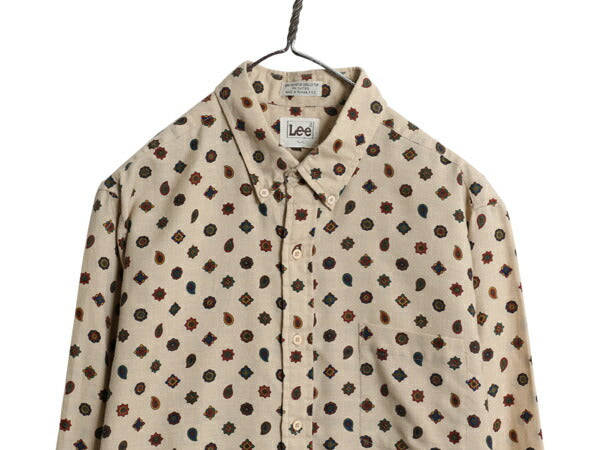 80s リー ペイズリー 総柄 長袖 ボタンダウン シャツ メンズ L / ヴィンテージ 長袖シャツ ポケット付き シワになりにくい BD カジュアル
