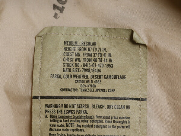 制式名称 : PARKA, COLD WEATHER, DESERT CAMOUFLAGE