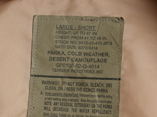 制式名称 : PARKA, COLD WEATHER, DESERT CAMOUFLAGE