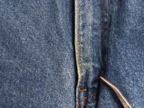5ポケット、オレンジタブ、トップボタン裏刻印565、