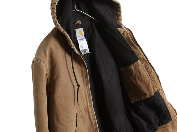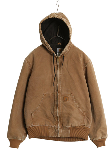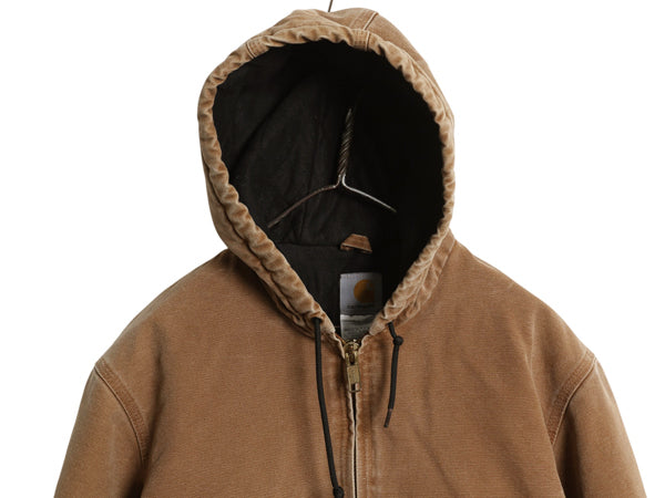 US企画 カーハート アクティブ ジャケット メンズ S / ワーク ダック フード パーカー 中綿 キルティング ライナー ブルゾン フルジップ 茶