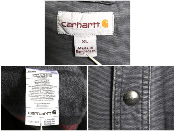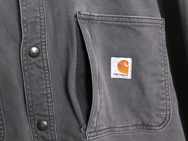 US企画 カーハート コットン キャンバス シャツ ジャケット メンズ XL / 古着 フリース ライナー付き 無地 ワーク ストレッチ 大きいサイズ