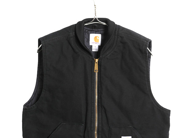 US企画 カーハート 中綿 ダック ベスト メンズ S / ナイロン キルティング ライナー フルジップ コットン 重ね着 前開き ワーク 無地 黒