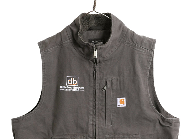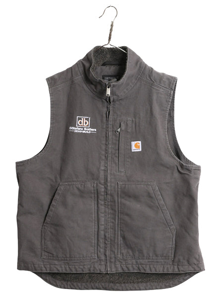 US企画 カーハート モックネック ダック ベスト メンズ L 裏 ボア パイル フリース フルジップ ハイネック ワーク 重ね着 前開き 企業 灰