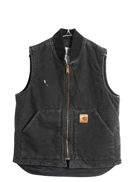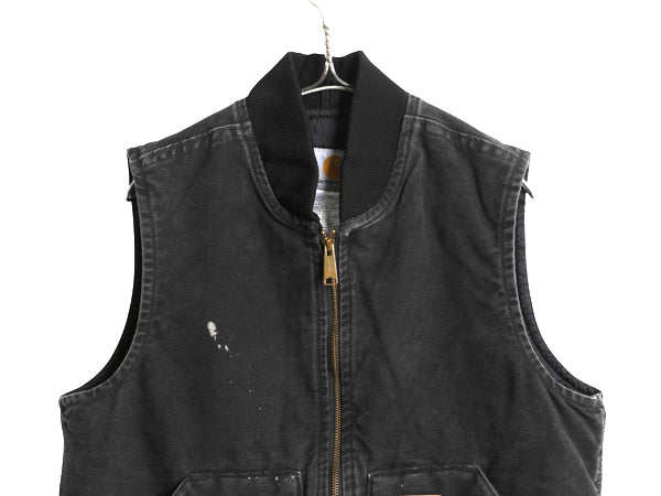US企画 カーハート 中綿 ダック ベスト メンズ M / ナイロン キルティング ライナー フルジップ コットン 重ね着 前開き ワーク 無地 黒