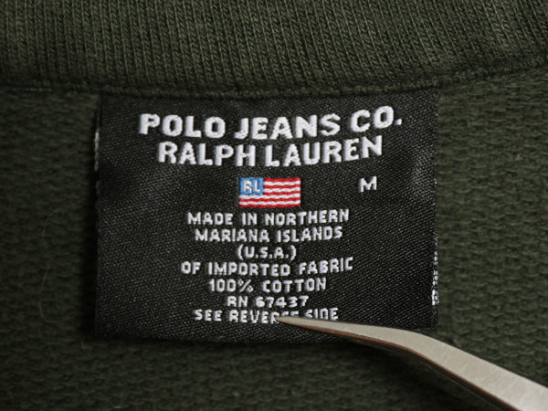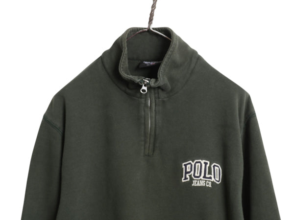 ポロジーンズ ラルフローレン ハーフジップ スウェット メンズ M 古着 トレーナー プルオーバー ハイネック ワンポイント ポケット付き 緑