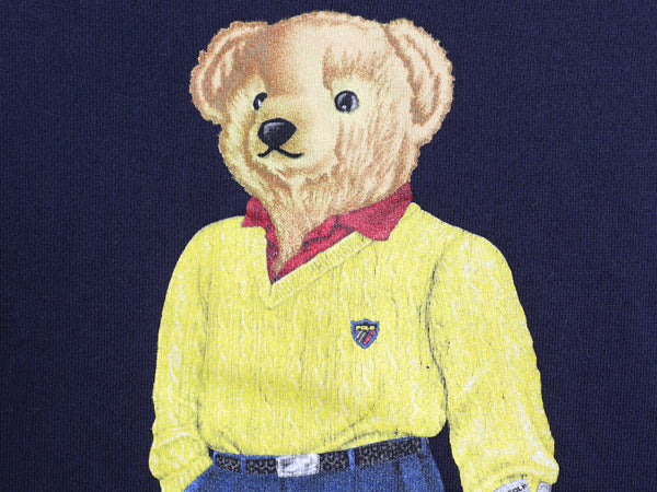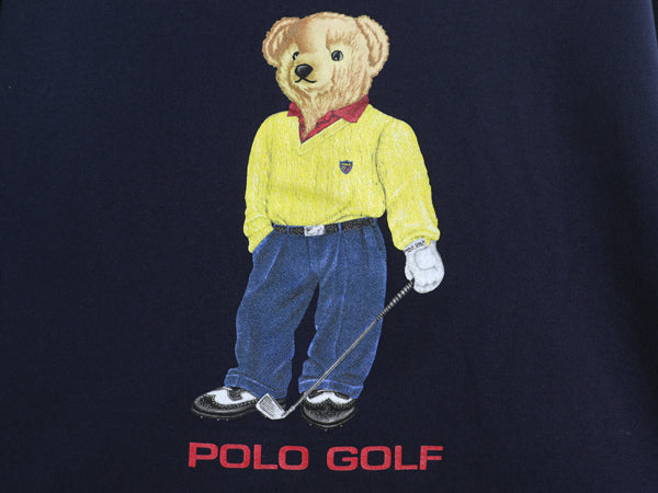 90s ポロベア ポロゴルフ ラルフローレン プリント スウェット メンズ L / オールド ポロ トレーナー クルーネック 裏起毛 キャラクター 紺