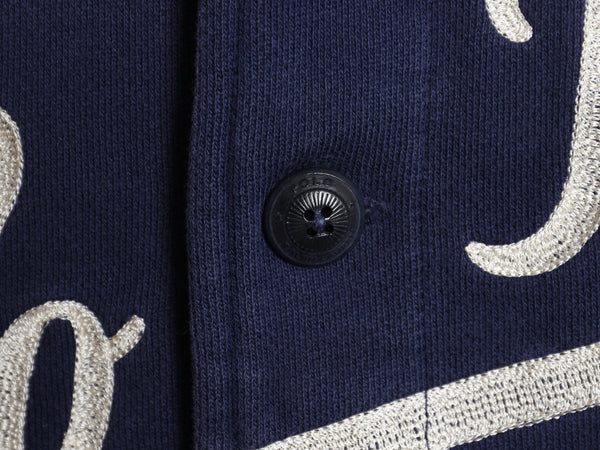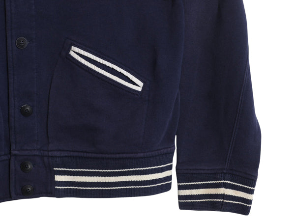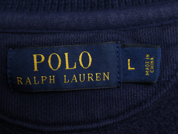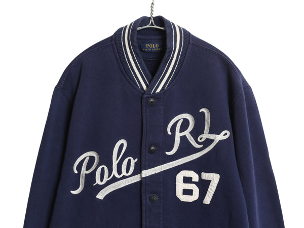 ポロ ラルフローレン スウェット スタジャン メンズ L 古着 ジャケット ジャンパー トレーナー 裏起毛 チェーンステッチ 刺繍 ボタスタ 紺