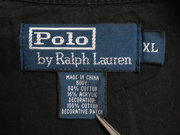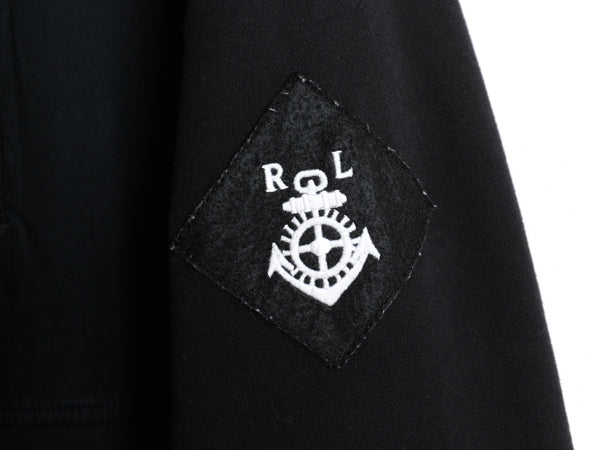 00s ポロ ラルフローレン スウェット コットン 切替 ジャケット メンズ XL オールド 収納フード ブルゾン 裏起毛 大きいサイズ 黒 ワッペン