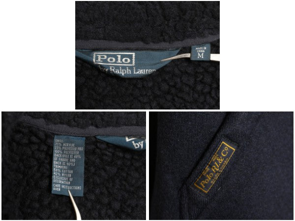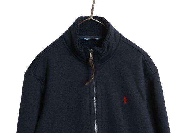 00s ポロ ラルフローレン 裏 パイル フリース ジャケット メンズ M / 古着 オールド フルジップ ジャンパー ブルゾン 裏ボア ハイネック 紺
