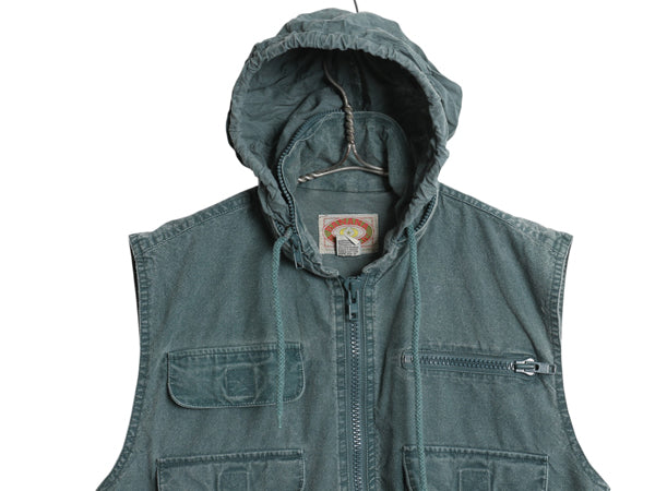 80s バナナリパブリック サファリ ベスト メンズ S / 旧タグ ヴィンテージ 収納 フード ハンティング フィッシング アウトドア フルジップ