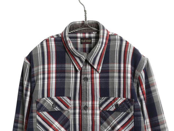 日本製 フラットヘッド チェック ヘビー フランネル シャツ メンズ M 古着 ネルシャツ チンスト マチ付き ヴィンテージ モデル 長袖シャツ