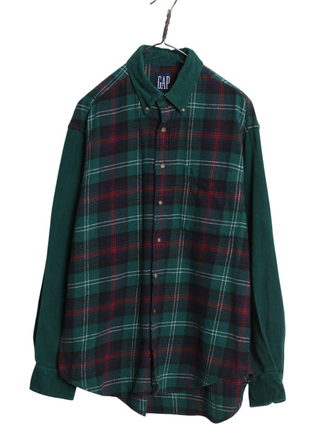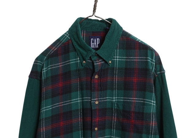 90s オールド ギャップ フランネル 細畝 コーデュロイ 切替 ボタンダウン シャツ メンズ L 古着 ネルシャツ チェック デザイン 長袖シャツ