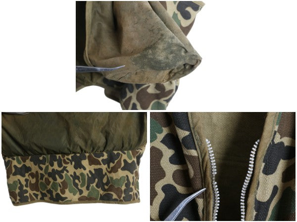 70s SAFTBAK ダックハンター カモ ハンティング ベスト メンズ L 程 / ヴィンテージ アウトドア 迷彩 コットン フルジップ 前開き 重ね着