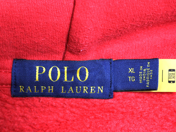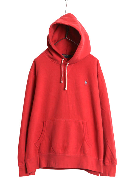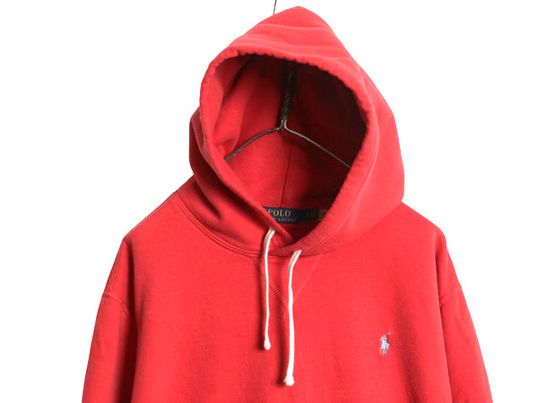 ポロ ラルフローレン スウェット フード パーカー メンズ XL プルオーバー 前V ヴィンテージ モデル 裏起毛 ワンポイント 大きいサイズ 赤