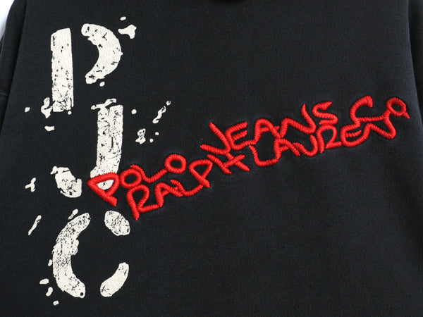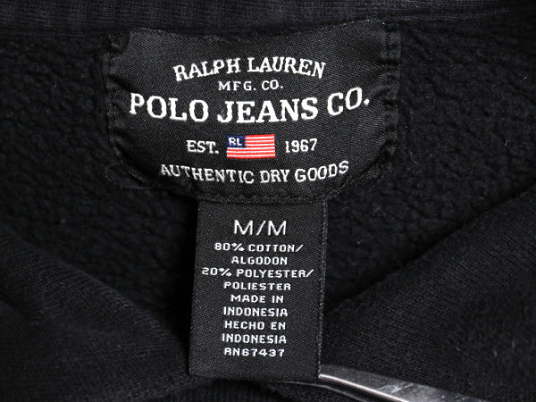 ポロジーンズ ラルフローレン スウェット パーカー メンズ M / プルオーバー トレーナー ステンシル ロゴ 刺繍 ヘビーウェイト 裏起毛 黒