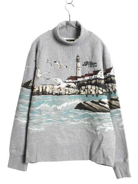 エルエルビーン トッド スナイダー コラボ プリント タートルネック スウェット メンズ L トレーナー アート イラスト ロゴ刺繍 裏起毛 灰