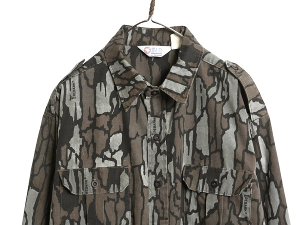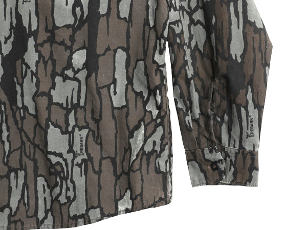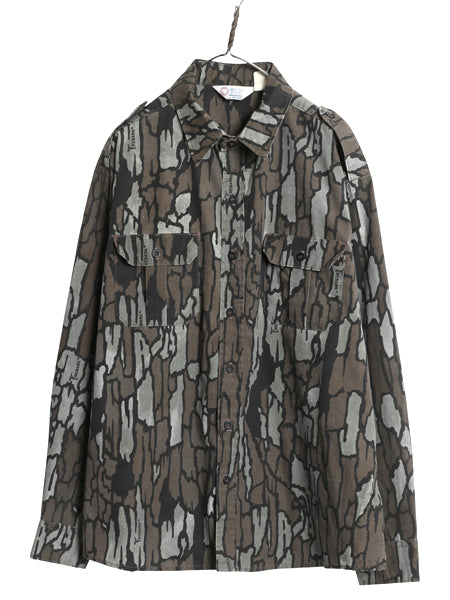 80s USA製 TREBARK リアルツリー カモ 長袖 サファリ シャツ メンズ XL / ヴィンテージ アウトドア ハンティング 迷彩 総柄 大きいサイズ