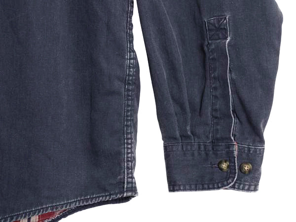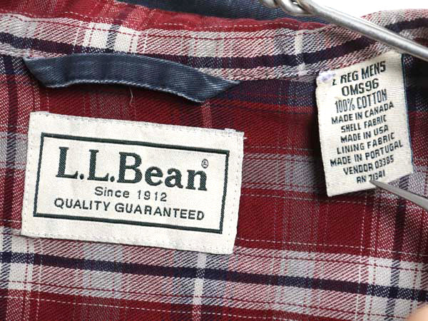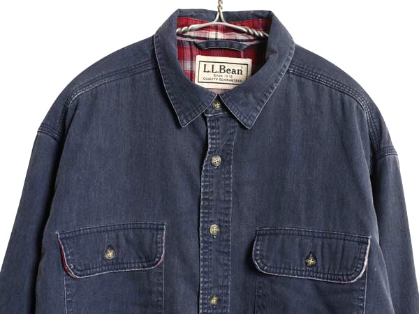 00s エルエルビーン コットン ツイル 長袖 シャツ メンズ L オールド アウトドア チェック フランネル ライナー付き ワーク ジャケット 紺