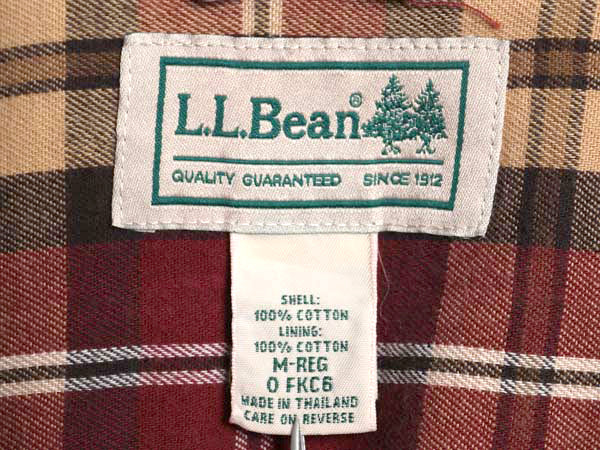 00s エルエルビーン コットン ツイル 長袖 シャツ メンズ M / オールド アウトドア チェック フランネル ライナー付き ワーク ジャケット