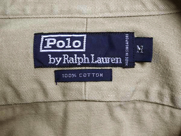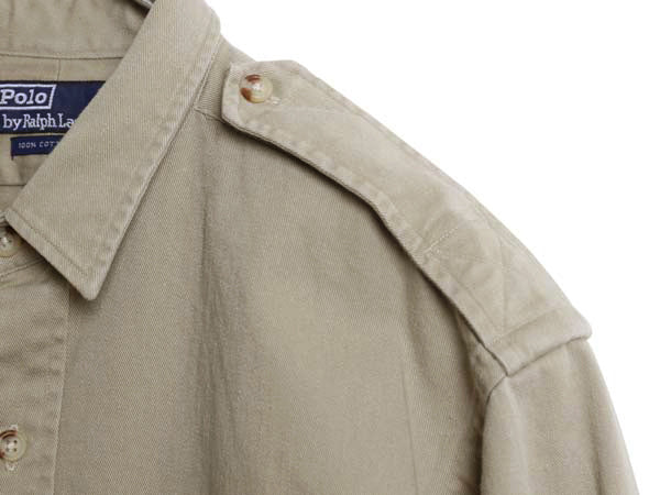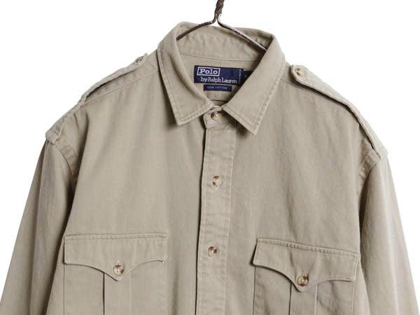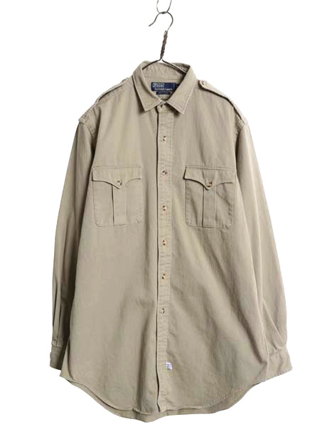 90s ポロ ラルフローレン 長袖 オフィサー シャツ メンズ M オールド 長袖シャツ ミリタリー アーミー タイプ サファリ ポニー無し カーキ