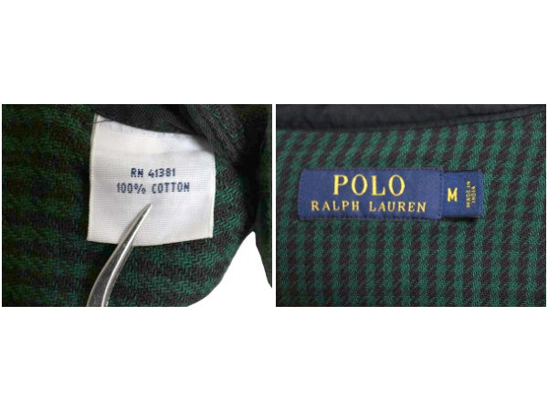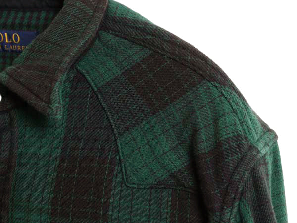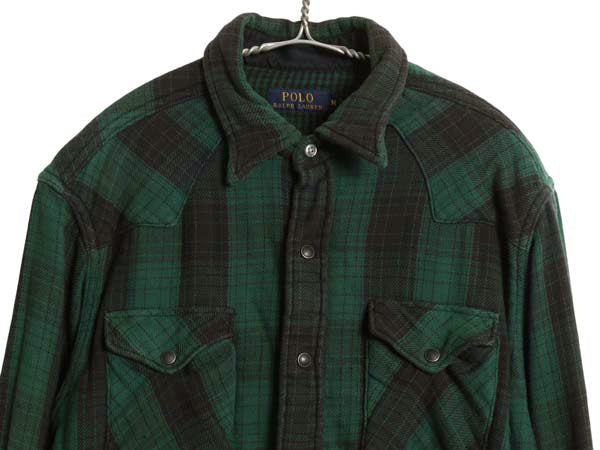 ポロ ラルフローレン チェック フランネル ウエスタン シャツ メンズ M / ネルシャツ 2レイヤー ライナー付き 長袖シャツ ツートン 黒 緑