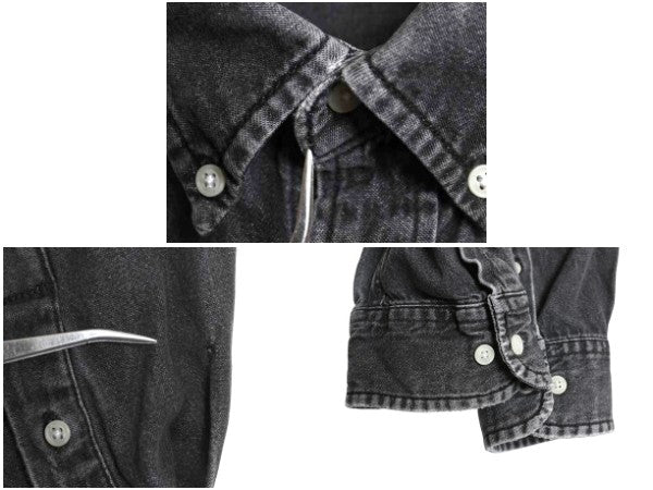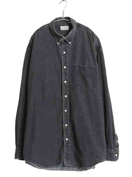 90s セントジョンズベイ 先染め ブラック デニム ボタンダウン シャツ メンズ XL / オールド 大きいサイズ 長袖シャツ ポケット付き 無地