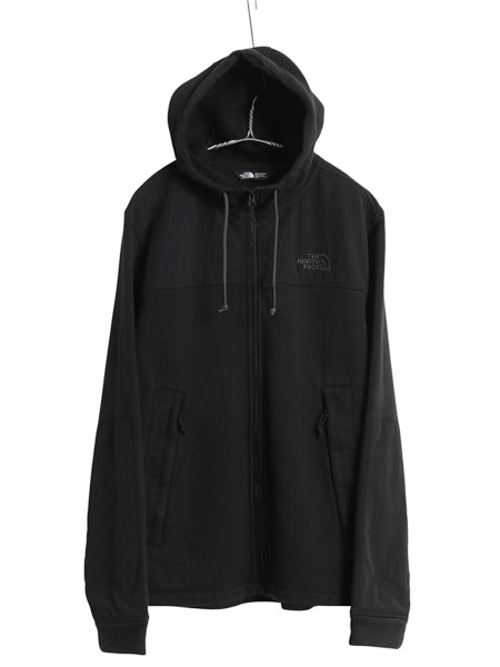 ノースフェイス フルジップ スウェット フード パーカー メンズ L アウトドア トレーナー ジャケット ジャンパー ナイロン 切替 裏起毛 黒
