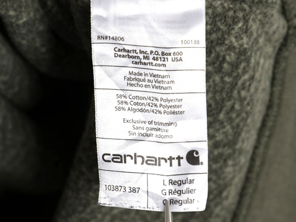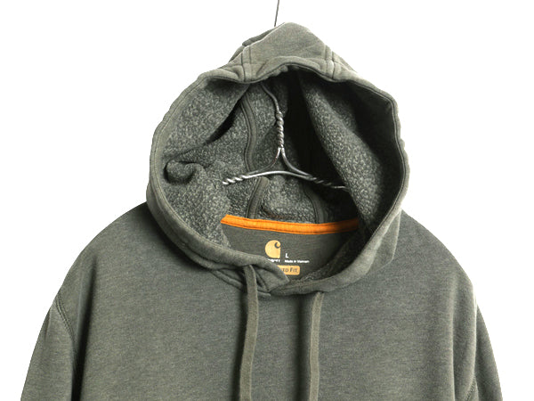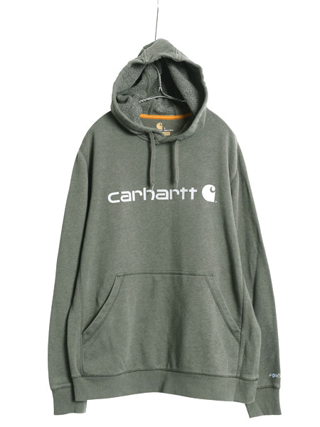 US企画 カーハート フォース プリント スウェット パーカー メンズ L 古着 トレーナー 裏起毛 プルオーバー ミドルウェイト オリーブ MOS