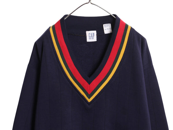 90s オールド ギャップ Vネック スウェット メンズ レディース M / トレーナー 裏起毛 チルデン タイプ プルオーバー 針抜き ライン入り 紺