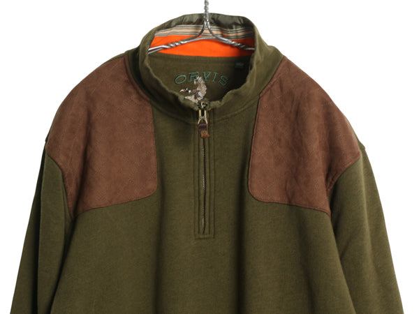 オービス ハーフジップ スウェット メンズ XL トレーナー ニット セーター プルオーバー ハンティング 裏起毛 レザー パッチ 大きいサイズ