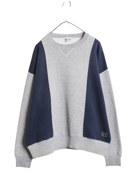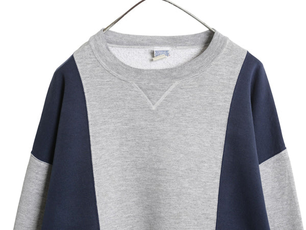 90s USA製 ラッセル 無地 スウェット メンズ レディース XL 古着 オールド トレーナー バイカラー 前V 裏起毛 大きいサイズ ツートン 灰 紺