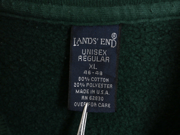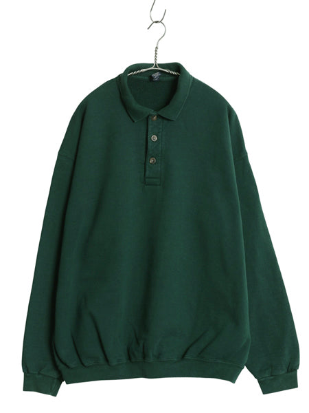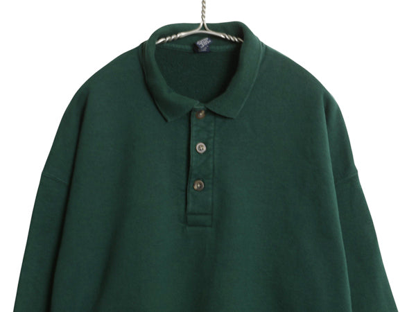 90s USA製 ランズエンド スウェット ポロシャツ メンズ レディース XL / オールド トレーナー 裏起毛 無地 ヘビーウェイト 大きいサイズ 緑