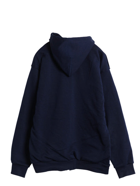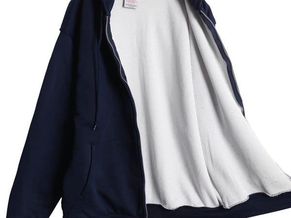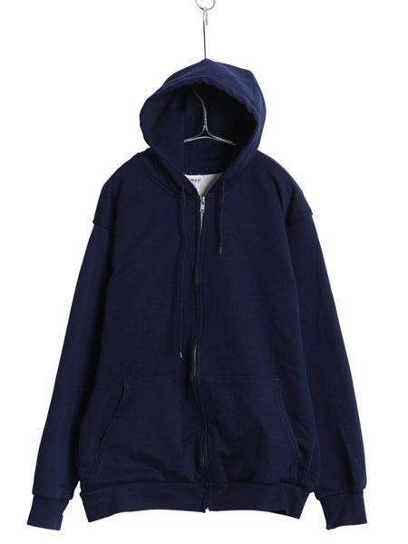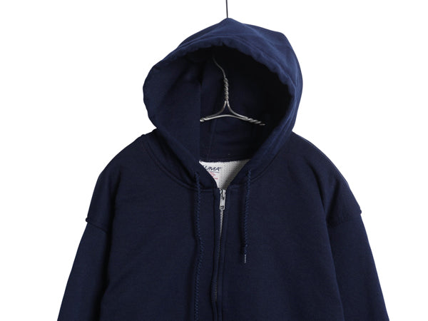 90s PLUMA 裏 サーマル フルジップ スウェット フード パーカー メンズ L 古着 オールド トレーナー ヘビーウェイト 無地 厚手 シンプル 紺