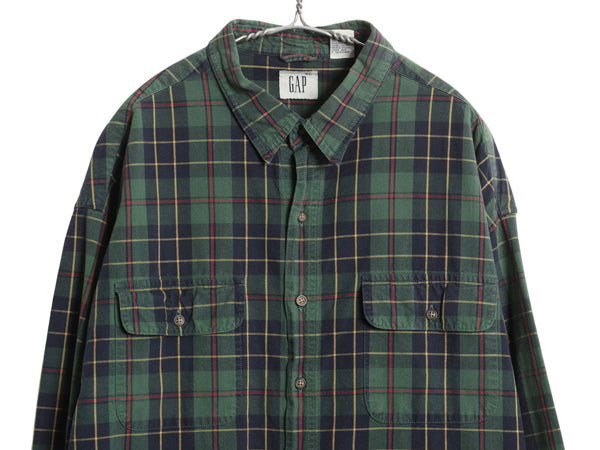 00s オールド ギャップ チェック 長袖 シャツ メンズ XL 旧タグ ヘビーウェイト コットン ゆったり カジュアル マルチカラー 大きいサイズ