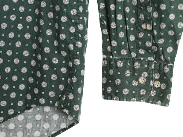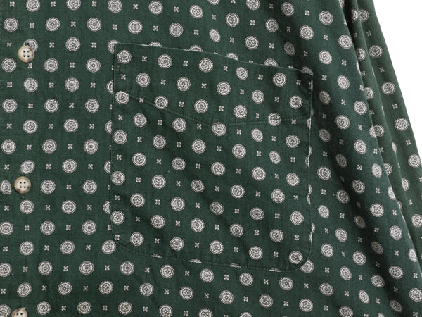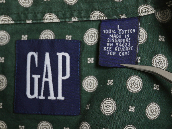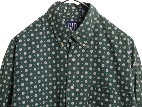 90s オールド ギャップ 総柄 長袖 ボタンダウン シャツ メンズ L / 古着 旧タグ BD コットン 長袖シャツ ポケット付き カジュアル グリーン