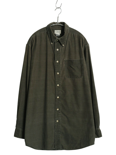 エルエルビーン 細畝 コーデュロイ 長袖 ボタンダウン シャツ メンズ L / 古着 長袖シャツ ポケット付き カジュアル コーズ 無地 オリーブ