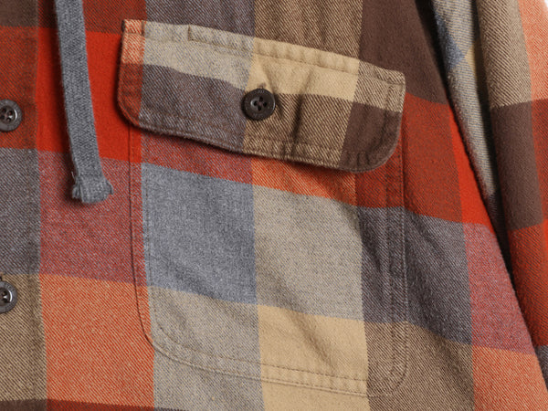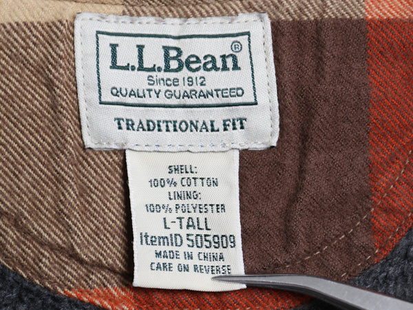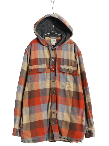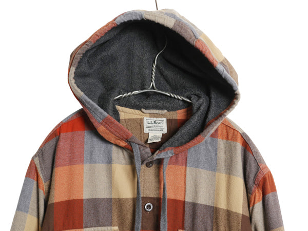 エルエルビーン ブロック チェック フード付き 長袖 フランネル シャツ メンズ L / パイル フリース ライナー付き ネルシャツ ジャケット